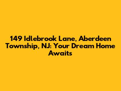 Hey there, home seekers! Are you on the hunt for that perfect slice of paradise in Aberdeen Township, New Jersey? Well, buckle up, because we're about to dive deep into a property that might just steal your heart: 149 Idlebrook Lane. This isn't just any address; it's a gateway to a lifestyle you've been dreaming of, offering a blend of comfort, style, and that unmistakable feeling of home. Whether you're a growing family, a couple looking to settle down, or even a savvy investor, understanding the nuances of this particular locale and the potential it holds is crucial. We're going to break down what makes this home, and the surrounding Aberdeen Township, so special, covering everything from its features to the community vibe. So grab a coffee, get comfy, and let's explore the possibilities at 149 Idlebrook Lane.