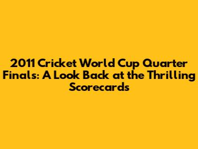 2011 Cricket World Cup Quarter Finals: Scorecards & Key Moments