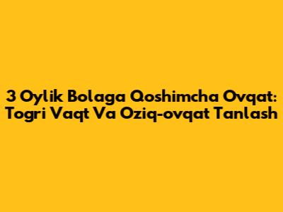 3 oylik bolaga qo'shimcha ovqat berish masalasida ehtiyotkor bo'lish kerak. Umumiy qoida - 6 oylikgacha faqat ona suti yoki formula bilan ovqatlantirish. Har doim pediatr bilan maslahatlashing va u sizning farzandingiz uchun eng yaxshi yondashuvni aniqlashga yordam beradi. Bolangizning rivojlanishiga e'tibor bering va sabr-toqatli bo'ling. Vaqt kelganda, qo'shimcha ovqat berish chaqalog'ingiz uchun juda qiziqarli va foydali tajriba bo'lishi mumkin!