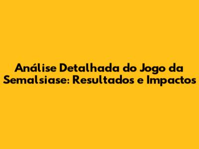 Análise Detalhada Do Jogo Da Semalsiase: Resultados E Impactos