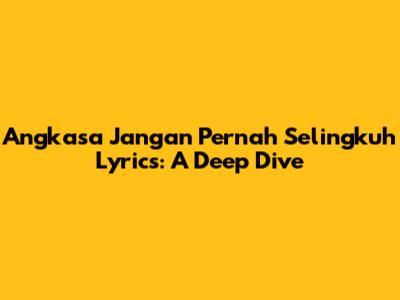 Let's dive deep into the heartfelt lyrics of Angkasa's song, "Jangan Pernah Selingkuh." This song, which translates to "Never Cheat" in English, explores themes of love, loyalty, and the pain of betrayal. We'll break down the lyrics, explore the meaning behind them, and understand why this song resonates with so many listeners.