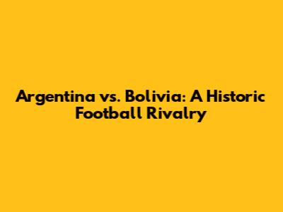 Argentina Vs. Bolivia: A Historic Football Rivalry