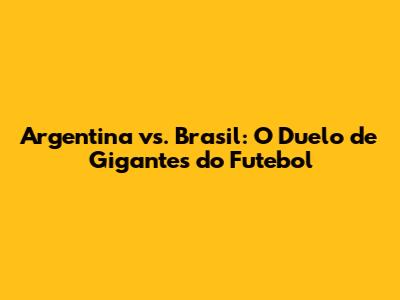 Argentina Vs. Brasil: O Duelo De Gigantes Do Futebol