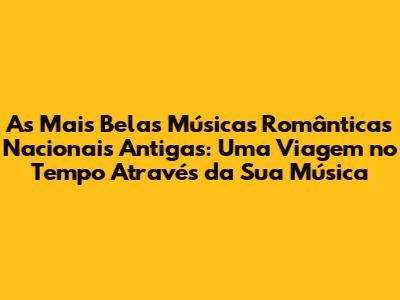 Clássicos Inesquecíveis: Uma Seleção de Músicas Românticas Nacionais Antigas