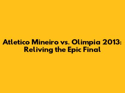 Hey guys! Let's rewind the clocks and dive deep into one of the most unforgettable clashes in Copa Libertadores history: the 2013 final between Atlético Mineiro and Olimpia. This wasn't just a game; it was a saga, a rollercoaster of emotions, and a testament to the beautiful, unpredictable nature of football. This article will break down the entire event, from the initial setup to the ultimate heart-stopping conclusion, giving you the lowdown on the key players, the critical moments, and the sheer drama that unfolded. Ready to relive the magic? Let's go!