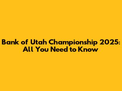 Bank Of Utah Championship 2025: All You Need To Know
