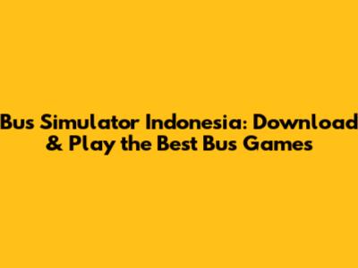Bus Simulator Indonesia: Download & Play The Best Bus Games
