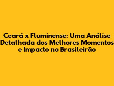 O resultado da partida entre Ceará x Fluminense teve um impacto significativo no Campeonato Brasileiro, alterando a classificação e as expectativas das equipes. Para o Fluminense, a vitória (ou empate) representou... (descreva o impacto na classificação, na briga pelo título ou por vagas em competições internacionais). A equipe carioca se manteve firme na luta por seus objetivos, mostrando que está preparada para encarar os desafios da competição. Para o Ceará, o resultado (vitória, empate ou derrota) significou... (descreva o impacto na classificação, na luta contra o rebaixamento ou por objetivos específicos). A equipe cearense precisou se reorganizar e traçar novas estratégias para as próximas partidas, buscando alcançar seus objetivos. O Campeonato Brasileiro é uma competição longa e imprevisível, e cada jogo tem sua importância na busca pelo título ou na permanência na elite do futebol nacional. Os próximos desafios de Ceará e Fluminense serão... (cite os próximos jogos de cada equipe e seus respectivos adversários). As equipes precisarão se preparar para esses confrontos, buscando a vitória e mostrando que estão prontas para lutar pelos seus objetivos. A análise do impacto no Campeonato Brasileiro revela a importância de cada partida e a necessidade de as equipes se manterem focadas e determinadas em busca de seus objetivos. A competição segue intensa, e os torcedores podem esperar por mais emoções e grandes jogos.