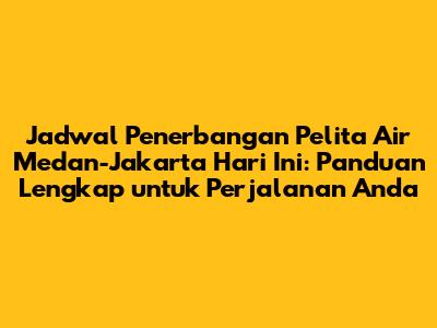 Jadwal penerbangan Pelita Air Medan-Jakarta hari ini merupakan informasi krusial bagi kalian yang berencana melakukan perjalanan udara antara kedua kota tersebut. Sebagai salah satu maskapai yang melayani rute ini, Pelita Air menawarkan pilihan penerbangan yang perlu kalian ketahui. Artikel ini akan menyajikan panduan lengkap mengenai jadwal penerbangan Pelita Air dari Medan (KNO) ke Jakarta (CGK) hari ini, termasuk informasi penting lainnya yang akan membantu perjalanan Anda menjadi lebih lancar dan nyaman. Jadi, guys, simak terus ya!