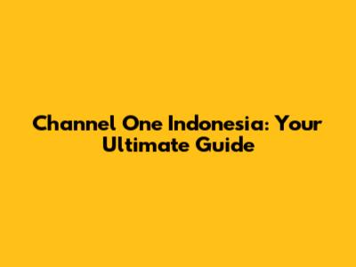 Channel One Indonesia: Your Ultimate Guide