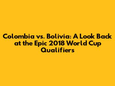 Alright, let's talk about the specific matches between Colombia and Bolivia during the 2018 qualifiers. These games provided plenty of drama and memorable moments that fans still talk about today. The matches were filled with tension, tactical battles, and individual moments of brilliance. The rivalry between the two teams was evident in the intensity and competitiveness of their matches. The players left everything on the field, giving fans a football experience to remember. Both teams were aware of the significance of these matches. The outcomes could potentially impact their chances of reaching the World Cup. The matches were more than just games; they were battles for national pride, played with passion and commitment. These games were a testament to the spirit of South American football, showcasing the talent and dedication of players from both nations. The atmosphere in the stadiums was electric, creating an unforgettable experience for both players and fans. The matches were a true reflection of the love for the sport that defines South American football. These matches were a testament to the beauty and unpredictability of the game, leaving a lasting impression on everyone who witnessed them.