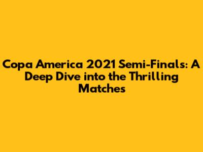 Copa America 2021 Semi-Finals: Thrilling Matches