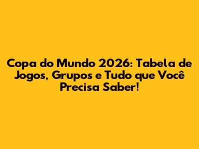 Copa Do Mundo 2026: Tabela De Jogos, Grupos E Tudo Que Você Precisa Saber!