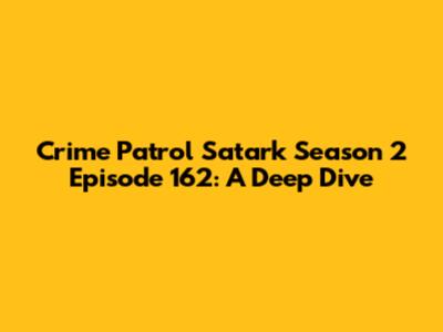 Hey guys! Ever found yourselves glued to the TV, completely engrossed in a crime drama? If you're anything like me, you've probably spent countless hours watching shows like Crime Patrol Satark. And if you're a fan, you probably remember episode 162 of season 2. It was a real nail-biter, wasn't it? Let's take a closer look at that episode, dissecting the case and what made it so darn captivating. This analysis aims to break down the key elements of the episode, offering insights into the storytelling, the investigation process, and the overall impact of the narrative. So, buckle up, because we're about to dive deep into the world of crime and suspense!
