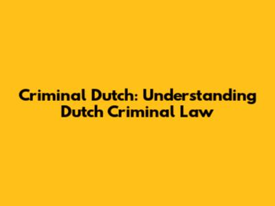 Criminal Dutch: Understanding Dutch Criminal Law