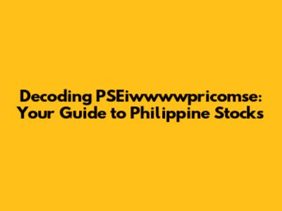 Hey guys, let's dive into the exciting world of Philippine stocks and unpack a term that might sound a bit like alphabet soup: PSEiwwwwpricomse. Don't worry, we'll break it down step-by-step. This guide is designed to be your friendly companion, making the stock market feel less intimidating and more approachable. Whether you're a seasoned investor or just starting to dip your toes in, understanding PSEiwwwwpricomse is crucial. So, grab a coffee, and let's get started!