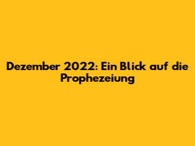 Dezember 2022: Ein Blick Auf Die Prophezeiung