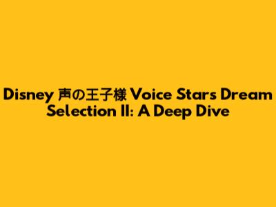 Hey everyone! Get ready to dive into the enchanting world of Disney 声の王子様 Voice Stars Dream Selection II! For those of you who might be new to this, it's a super cool project where some of the most talented voice actors in Japan bring your favorite Disney songs to life. Imagine your childhood classics, sung with a fresh perspective and heaps of talent – it's pure magic! This particular selection, the "II" in the title, is the second installment, promising even more musical brilliance and vocal prowess. We're going to explore what makes this album so special, look at some of the incredible voice stars involved, and why it's a must-listen for any Disney fan, especially those who appreciate the art of Japanese voice acting (seiyuu).