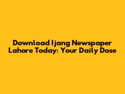 Download Ijang Newspaper Lahore Today: Your Daily Dose