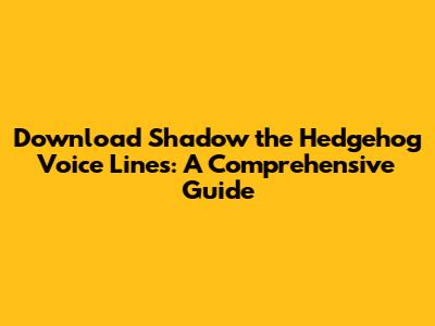 Download Shadow The Hedgehog Voice Lines: A Comprehensive Guide