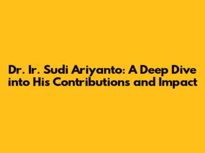 Hey there, folks! Let's talk about Dr. Ir. Sudi Ariyanto, a name that resonates with many in specific circles. Ever wondered about his journey, the work he's done, and the impact he's had? Well, buckle up, because we're about to dive deep into the world of this accomplished individual. We'll explore his background, some of the projects he's been involved in, and the kind of influence he wields. This isn't just about listing achievements; it's about understanding the person behind them and how his work contributes to the bigger picture. So, whether you're a student, a professional, or just someone curious, this is for you. Get ready to explore the life and career of Dr. Ir. Sudi Ariyanto in a way that's easy to grasp and appreciate. Let's get started!