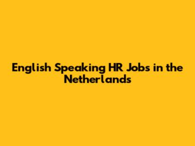 English Speaking HR Jobs In The Netherlands