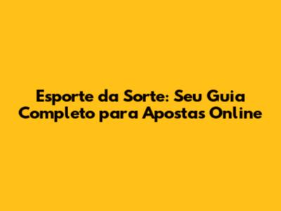 Esporte Da Sorte: Guia Completo E Dicas Para Apostar