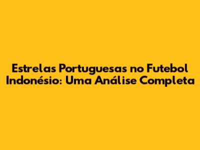 Estrelas Portuguesas No Futebol Indonésio: Uma Análise Completa