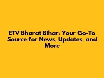 Hey guys! Are you looking to stay updated with all the latest happenings in Bihar? Well, look no further! ETV Bharat Bihar is your one-stop destination for comprehensive news coverage, insightful updates, and a whole lot more. Let's dive into what makes ETV Bharat Bihar such a valuable resource for staying informed about everything that's going on in this vibrant state.