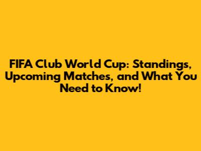 FIFA Club World Cup: Standings, Upcoming Matches, And What You Need To Know!