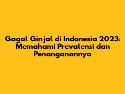 Gagal ginjal di Indonesia pada tahun 2023 adalah masalah kesehatan yang serius, tetapi bukan berarti tidak ada harapan. Dengan memahami prevalensi, penyebab, dan pilihan penanganan yang tersedia, kita bisa mengambil langkah-langkah untuk mencegah dan mengelola penyakit ini. Ingatlah, menjaga kesehatan ginjal adalah investasi untuk masa depan yang lebih baik.