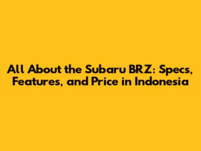All About the Subaru BRZ: Specs, Features, and Price in Indonesia