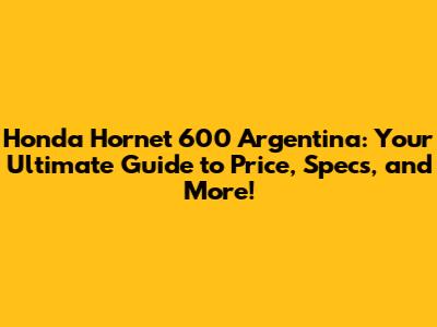 Honda Hornet 600 Argentina: Price, Specs, And More!