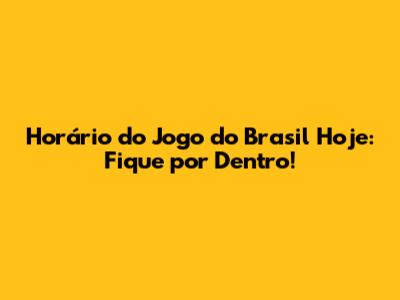 Horário Do Jogo Do Brasil Hoje: Fique Por Dentro!