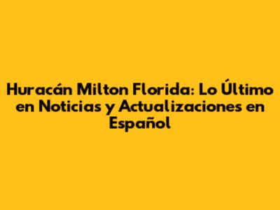 Huracán Milton Florida: Últimas Noticias En Español