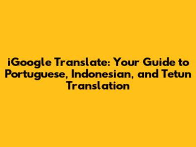Hey guys, let's dive into the world of languages and explore how we can use tools like iGoogle Translate to bridge the communication gap. Today, we're focusing on some cool language combinations: Portuguese, Indonesian, and Tetun. Whether you're a student, a traveler, or just someone curious about different cultures, understanding how to translate between these languages can be super helpful. So, let's get started and break down how iGoogle Translate can be your go-to tool for these translations. We will explore the nuances of each language and how to make the most of translation services. Understanding these languages can open up a whole new world of opportunities, whether you're planning a trip, connecting with new people, or expanding your knowledge.