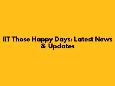 IIT Those Happy Days: Latest News & Updates