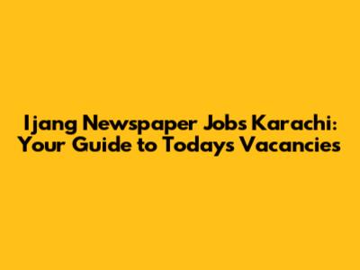 Ijang Newspaper Jobs Karachi: Latest Vacancies Today