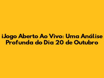 IJogo Aberto Ao Vivo: Análise E Debate Do Dia 20 De Outubro