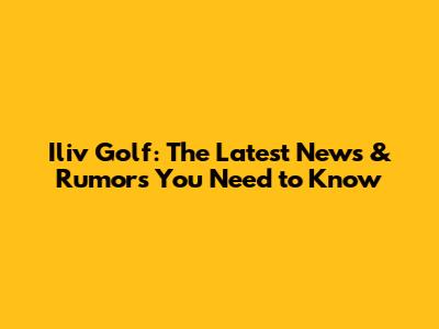 Iliv Golf: Latest News & Rumors