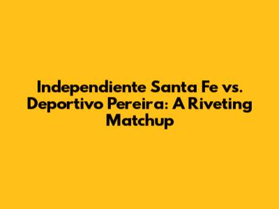 Independiente Santa Fe Vs. Deportivo Pereira: A Riveting Matchup