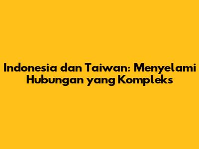 Indonesia Dan Taiwan: Hubungan Diplomatik Yang Rumit