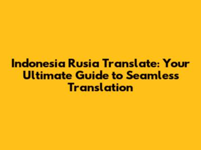 Indonesia Rusia Translate: Your Guide To Translation