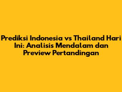 Pertandingan antara Indonesia dan Thailand selalu menjadi laga yang menarik dan penuh dengan drama. Kedua tim memiliki kekuatan dan kelemahan masing-masing, sehingga sulit untuk memprediksi siapa yang akan keluar sebagai pemenang. Namun, dengan persiapan yang matang dan strategi yang tepat, kedua tim akan berusaha untuk memberikan yang terbaik bagi para penggemar sepak bola. Mari kita saksikan bersama pertandingan seru ini dan dukung timnas Indonesia! Semoga artikel ini memberikan informasi yang bermanfaat bagi Anda dalam memahami prediksi pertandingan Indonesia vs Thailand hari ini. Jangan lewatkan update terbaru seputar sepak bola Indonesia dan internasional di artikel-artikel kami selanjutnya. Sampai jumpa!