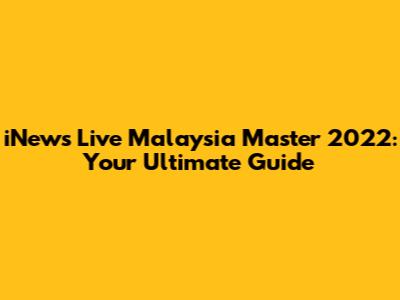 INews Live Malaysia Master 2022: Your Ultimate Guide