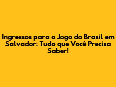 Onde posso comprar ingressos para o jogo do Brasil em Salvador? Os ingressos geralmente são vendidos nos sites oficiais da CBF e das empresas parceiras. Fique de olho nas notícias e informações oficiais para não perder as datas de venda.