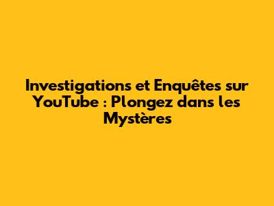 Investigations Et Enquêtes Sur YouTube