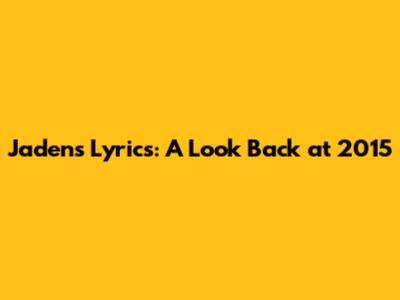Jaden's Lyrics: A Look Back At 2015