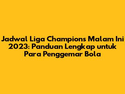 Jadwal Liga Champions malam ini 2023 adalah panduan penting bagi para penggemar sepak bola yang ingin menyaksikan pertandingan-pertandingan seru di kompetisi paling bergengsi di Eropa. Dengan mengetahui jadwal pertandingan, cara menonton, dan tips-tips tambahan, kalian bisa menikmati setiap momen di Liga Champions dengan lebih maksimal. Jangan lupa untuk selalu mengikuti perkembangan informasi terbaru seputar Liga Champions, termasuk jadwal pertandingan, hasil pertandingan, dan berita terbaru. Jadi, siapkan diri kalian untuk menyaksikan aksi-aksi terbaik dari tim-tim terbaik Eropa di Liga Champions 2023! Selamat menonton!