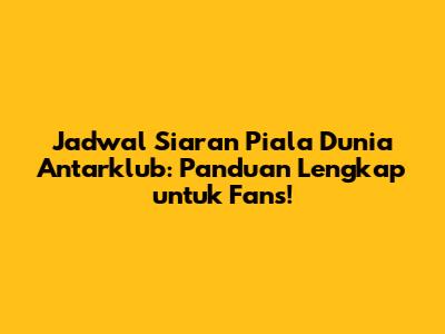 Jadwal Siaran Piala Dunia Antarklub: Panduan Lengkap Untuk Fans!
